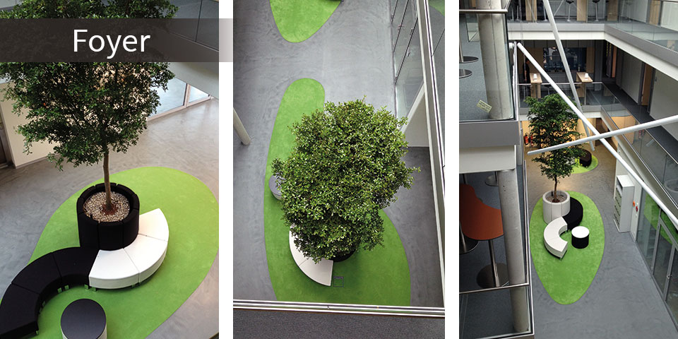 Gewerbliche Inneneinrichtung sehen wir als komplexe Aufgabe. Neben dem losen Mobiliar kümmern wir uns u.a. um Fenstergestaltung, Sonnenschutz, Lichtlösungen, Informationssysteme, Begrünung, Raumakustik und vieles mehr. Langjährige Kooperationen zu regionalen Handwerksbetrieben wie Tischlereien, Metallbauer, Holz- und Glaskünstlern ermöglichen uns Branchenlösungen „von der Stange” mit individuellen Anfertigungen zu kombinieren und auf diese Weise ganz eigene, unikatartige Raumlösungen zu schaffen.